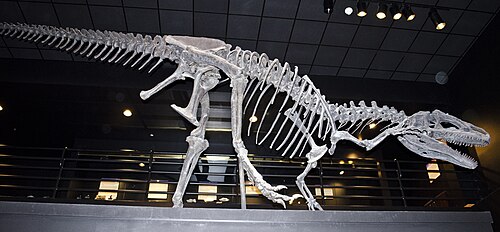 There is some debate as to whether Tyrannosaurus and other tyrannosaurids could have had “proto-feather” filaments. This hypothesis was further ignited by the discovery of the species Yutyrannus huali, a large tyrannosauroid (more basal or primitive members of Tyrannosauroidea, which contains Tyrannosauridae as well as more basal relatives) with feathers.