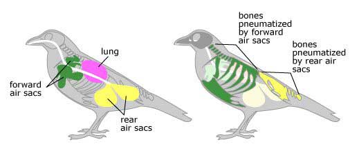 The air sac system in birds. This system is more developed in modern birds than it was in non-avian saurischian dinosaurs.