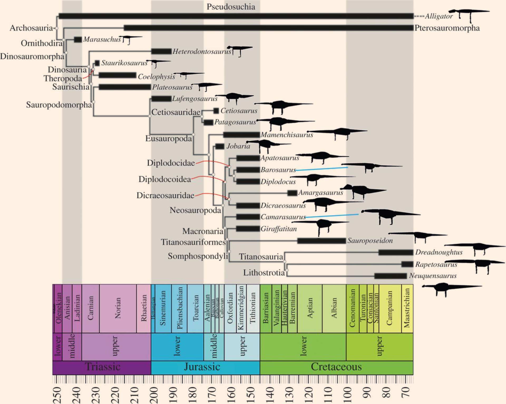 Most notably, some of the largest sauropods are contained in the group Titanosauria (within Macronaria).